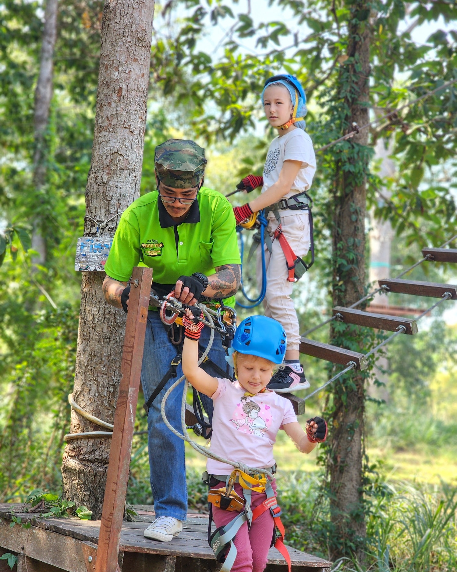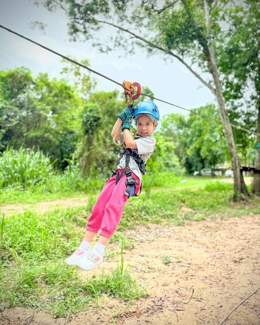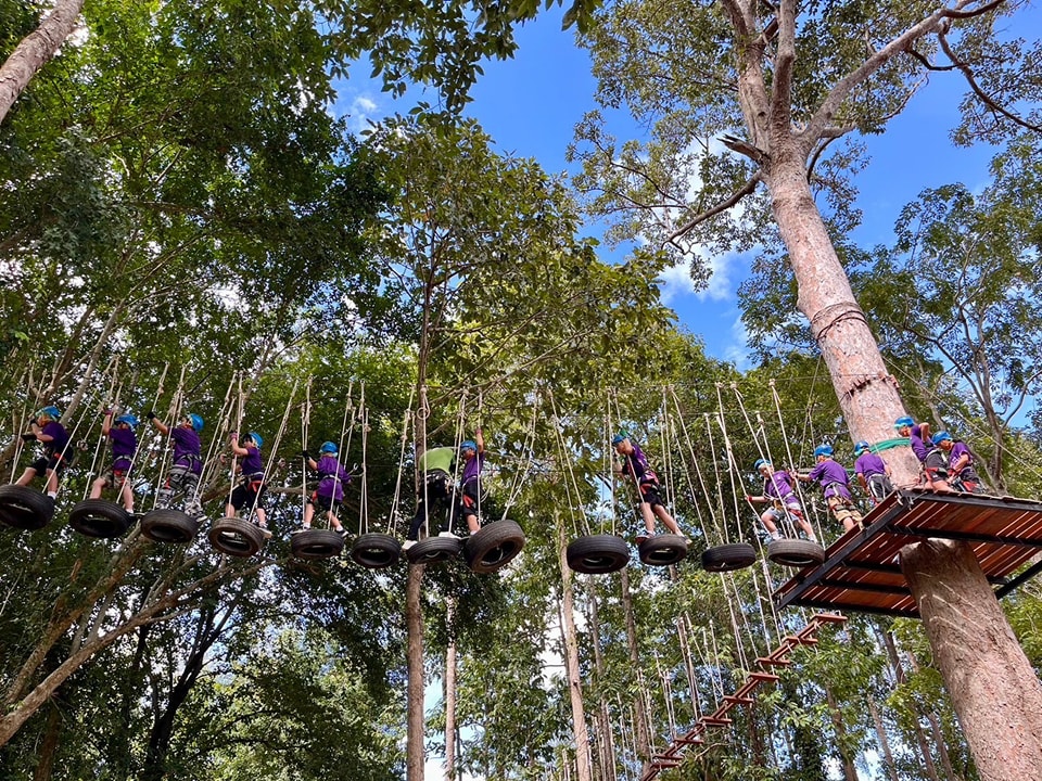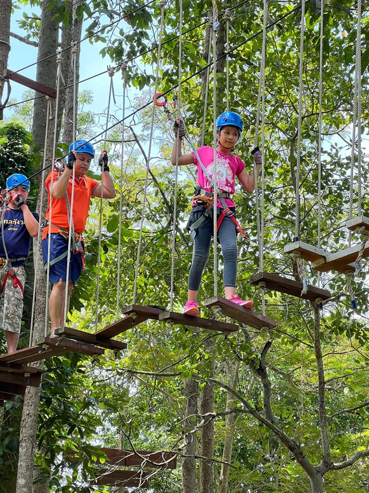 חוויה מאתגרת ומהנה בין העצים עם גשרים, חבלים ואומגות באווירה טבעית ופסטורלית מול הנופים הירוקים של הואה הין.