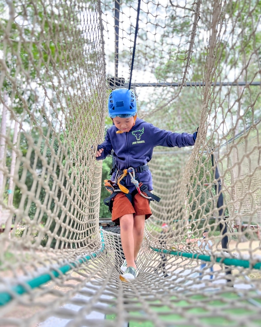 אטרקציה מלאת אדרנלין בגובה העצים, עם מסלול מרהיב שמורכב מ-25 אתגרים רציפים בין פלטפורמות ומעץ למעץ. כולל הליכת חבלים מאתגרת, חבלי שיווי משקל, מעבר על גשר אקרילי שקוף, הליכה דרך חישוקי צמיגים, רכבת סקייטבורד מעופפת וכמובן מסלול אומגות מלא אנרגיה.